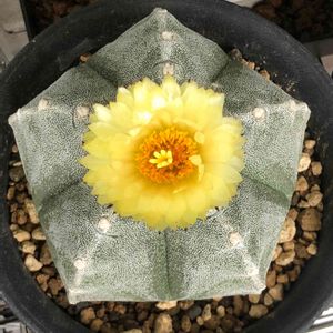 さわやか‼️ レモンイエローのさわやかな色合いの花が咲きました❗️ アストロフィツム まだら白点亀甲ランポー玉 (W11cm)