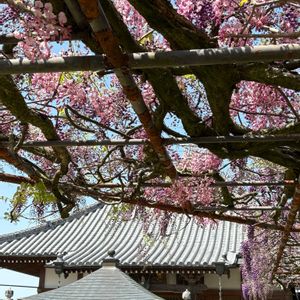 おはようございます🌞 《萬福寺編・その2》をお届けします🤗🎶 藤がゆらゆら〜〜💜🩷🤍🎶 心もゆらゆら〜〜💜🩷🤍🎶 ④は藤の中でも唯一の八重。 『八重黒龍』✨✨ さあ、今日も張り切って楽しく過ごしましょう🥰🎶 2025・4・21🤳