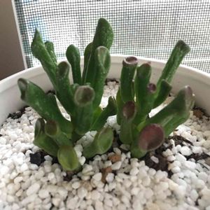 一週間留守にしたら 真ん中の 親株が枯れてしまってたので 繋がってる部分を切りました💦 他の子も元気が無くて💦