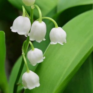 真っ白で提灯袖の様なフリルが とっても可愛らしい花 鼻を近づけると仄かに香る甘い香り 柔らかく長い葉っぱも シュールな曲線が魅力的 林の中で咲く可憐で清楚な花 鈴蘭🌱 別名 君影草