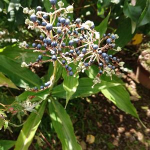 ヤブミョウガ(藪茗荷)の実が黒光りしています。 夏に白い花♡♡を見せてくれましたが、今は青紫色の実が光っています✨ 季節が進んでいるのですね😃