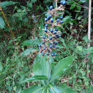 ヤブミョウガ 白い花だと見たらかわいい白い実も付いてました🤍💙 ツユクサ科ヤブミョウガ科の多年草で、薄暗い暗い林や藪に生え、葉の色や形がミョウガ(ショウガ科)に似るため命名 夏から秋にかけて花茎が伸び、直径6ミリほどの小さな白い花が、茎の上部に段々に集まって咲く。花には両性花と雄花があるが、いずれも一日しか持たない「一日花」
