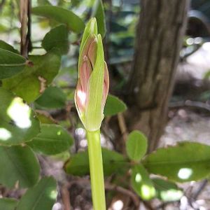 日付変わりましたが 今日のお花 (23日) ヒガンバナ の蕾 ✨ 4枚目 落ち葉を突き破って 蕾が伸びてきたみたい