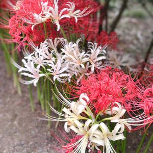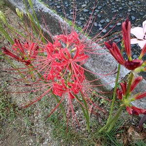今日のお花 雨が降る前に🚶♂️ 急に朝夕秋めいて 暑さ 寒さも彼岸までとは よく言ったものですね🤗 二十四節気(秋分)の頃に ポツポツと咲き始める 別名の曼珠沙華から天上の花とも 彼岸花 (リコリス-ラジアータ) 別名 マンジュシャゲ、 カミソリバナ、シビトバナ、 トウロウバナ 茎の先にクルンと反り返った花弁が 特徴的で 特に原種の赤はお彼岸の花 として彼岸花の名に相応しい 白は白花曼珠沙華と呼ばれ 花弁の反り返りが穏やかで 爽やか 白やクリーム色、黄色は交配種 因みにクリーム色は リコリスニアホワイト 白色の花びらにピンク筋が入った リコリスアルビフローラという 品種もあるそうです 黄色はショウキズイセン 他に淡い黄緑色や 黄色味が強い 喝采という 品種もあるそうで 私はまだ 見ぬ花々です😅 いつの日か出逢いがあると 嬉しいです🎶🤗