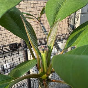 2025.7.4 プルメリアの花芽が上がってきました よくよく見たら、全てに花芽を確認‼️ この子は我が家のプルメリアの中では1番の古株 開花が楽しみです 実は、大きくなってしまったので枝を整理しようかと思っていたのですが カットしなくて良かったです でも、あまりに大きくなってしまったので 今後は考えないといけないですねぇ💦 【補足】 冬はエアコンを使わない部屋 カーテン越しエリアで過ごしてもらっていました 用土変えはしていませんが 5枚葉が出揃った時点で、魅惑の肥料を置きました