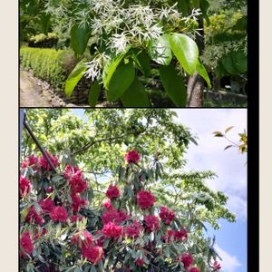 🏷️白い水曜日 昨日は公渕森林公園 ウォーキング ① 大きなシャクナゲの後ろに もっと大きな白い花 お手入れしてる人に聞いたら 「ナンジャモンジャの木だよ」 ②反対側に行くと大きな木🌳 咲いた時に通らないとわからないね 香川県にもあった😄 ③ 公園中にも白いお花の木が いっぱい 二週間前には なかったのに🤔 クロバイだそうです ④ 🏷️今日のお花 ワスレナグサ 4月上旬です 伸びたので昨日✂️しました ④ 🏷️おケツの日 直島の黄色いカボチャの近く アートのゾウさんはお花を しょっていました (4月25日) 淡い紫色👚藤の花🪻