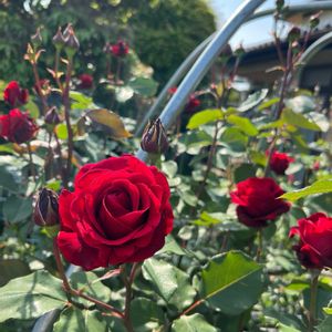 こんにちは♪ 今朝は寒かった〜😨 雨も上がり最高のお天気☀️ 風がなきゃなぁ💦 ①つるアイスバーグ🤍 狭い庭で1番場所を占領してます😅 今年はアーチにフェンス、オベリスクと陣地拡大して蕾も沢山🎶 期待したいです😊 ②ドンファン❤️ 秋ほどダークではないけど深い赤で咲き始めてます♪ こちらも今年は勢力拡大中🤭 ③はつね🧡 春はオレンジアプリコットよりな色合い✨ この子は好きなバラです🥰 不恰好で売れ残りのお値打ちさんで迎えて3年。未だに修正し切れてませんが今年は良いシュートが出てくれることを願ってます😉 ④ミニバラモカ🤎 光の加減もありますが、イエローに近いなぁ😅 低い位置のブルームーンとコラボってます😆 ⑤ミニバラのラベンダーコルダナ🪻 じゅせが強そうだったので鉢から地植えにして2年過ごしましたが、陽当たり悪く振るわず冬に掘り上げて鉢に♪ ミニバラって言う数本植え込んでありますよね…計5本を鉢4つと地植え1つに👆 それぞれ咲いてくれそうです😊 午後も良い時間をお過ごしください✨😉