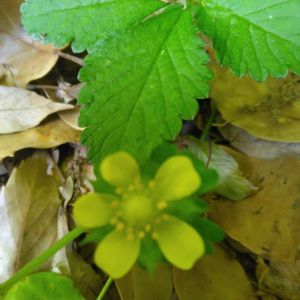 畑の西側の際、道路際です。 グランドカバーとして ヤブヘビイチゴやペニーロイヤルミントが 広がっています。 キリギリスの仲間もやってきました。