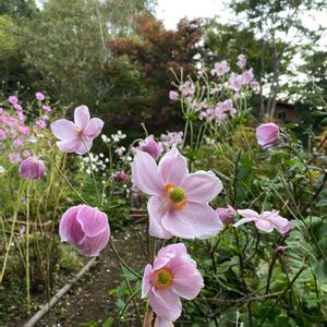 山荘の庭の秋明菊。 ピンクと、少しだけ白が、それぞれ綺麗に咲きました。