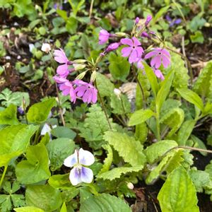 桜草と菫の共演。 山荘の庭には、いろいろな春の花が咲いていました♪ ♪ 母とおしゃべりしながら、のんびりお手入れする時間もまた良き。
