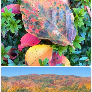 蓼科・諏訪にも負けない近所の紅葉💛🧡❤️🤎💚 柿の葉の落ち葉、 これ一枚で蓼科の山の紅葉を現しているよう🥰🥰🥰