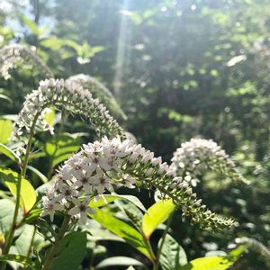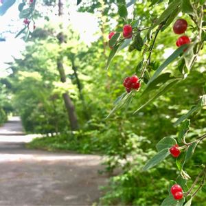 晴れ間にぶらぶらお散歩〜♪ 手前はユスラウメでしょうか。 → ヒョウタンボク とのことです。navyさんに教えて頂きました。ありがとうございます😊 #連休に行った蓼科でのひとコマです。