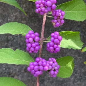 ムラサキシキブ♪ お散歩中に出会いました。コムラサキシキブかなぁ?うちの庭では、育ってくれなかったので、羨ましい…。🥲 今日は、昼間33℃‼️暑かった〜💦 朝晩は、涼しいけど、寒暖差がありますね〜😅