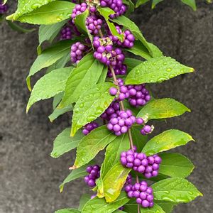 花壇で雨に濡れるムラサキシキブ どんどん色が深まってきました