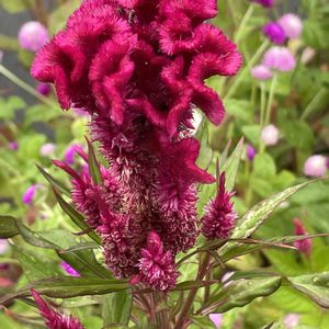 ケイトウ(鶏頭)たちが歩道中央の花壇で 雨に濡れながら元気に咲いていました ヒユ科ケイトウ属(セロシア属)の非耐寒性一年草 ほんとに鶏のトサカ(鶏冠)みたいだなぁ 夫は雨が苦手、あまり気が進まないようでしたが 傘を刺しながらウオーキング いつもは木立もなく太陽が照りつける歩道なので歩かないが 小雨で陽も射さないし花壇が多くて楽しい 時々立ち止まって撮影しながら歩いた