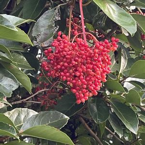 サンゴジュがこの木だけ真っ赤っか❤️ もっと赤くなるかも🪸🪸🔥 今日は午後から宝塚観劇💃🕺🏽 幸いなことにいとこの身内にタカラジェンヌが🤩 チケットもいとこにお任せ😅 ただいま東京宝塚劇場に向かって電車移動中🚃