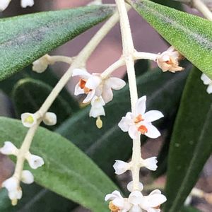 🫒オリーブ🫒 [今日のお花] 過去ピック 1️⃣パン屋さんの大きな鉢に植わっています。 オリーブの花小さいですね。 2️⃣3️⃣4️⃣散歩で出会った鉢植えのオリーブの実 5️⃣町内のお宅 いつ見ても実がなってない?