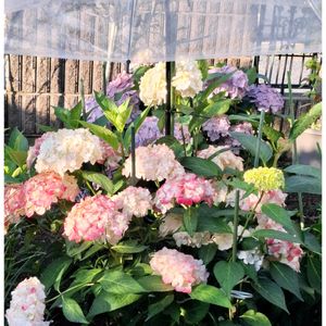 ☆yumi☆アジサイ ②光枝の虹 今年新入りのアジサイ 光枝は、奥様のお名前から 可愛らしく咲いてくれました 花咲き進むと、ピンク💗出てくる品種です 🏷️2025年♡紫陽花♪ 🏷️コラージュして遊ぼ♡ 🏷️コラージュ仲間達 参加します