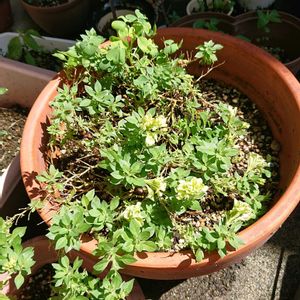 先月25日に投稿した時に、真ん中に穴が空いていて、どうしても、ここから水やりしてしまうーと、言ったばかりなのに、やっぱりクセは、簡単には直らない。 もっと広がってる感じ。 花がらを摘んでいましたが、思い切って切り詰めました。 かわいいサイズで、手で摘むのなかなか大変。 よく見たら、イワダレソウが、根付いていて、株元で、育っていました。 明日からは、花を持ち上げて、水やりします。 ここで、宣言したので、次回には、真ん中のハ〇てるところ、なくなってるハズです。
