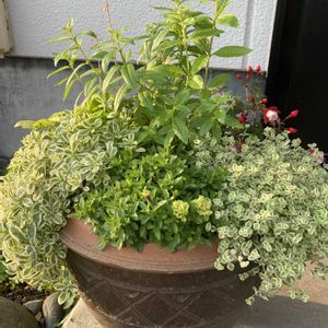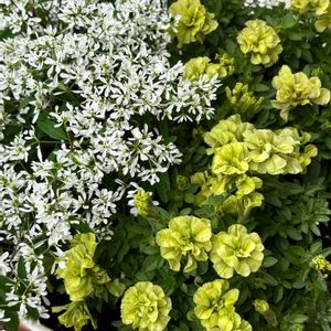 寄せ植えにしてみたら、シレネユニフローラとリトルミッシーに押され気味… 勢力争いが凄いです🤣 負けるなライム🍋🟩