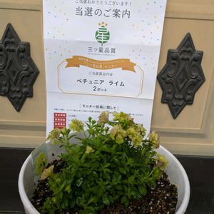 きちんと、ご報告が、遅れていました。 3日の日に、ペチュニアライムが、届きました。 三ツ星品質のモニターです。 前日にヤマト運輸さんからのメールで、当選は知っていましたが、やっぱり、届くと嬉しいですね。 すでに、大きめの鉢に植え付けしました。 私にしては珍しく手厚く育ててみようと思います。 あと少し、お花楽しんだら、一度切り詰めますね。