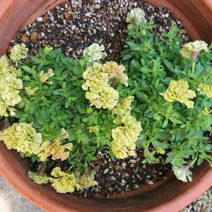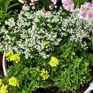 モニター 🍋🟩ペチュニア ライム🍋🟩 5月4日に、1ポットずつ、二つ、寄せ植えを作った もう一つの方です💐 ライム🍋🟩二つ目の寄せ植えは、ビタミンカラーに寄せて♪ お店に苗を見に行く前に 3パターンの配色を考えていて 1つ目は、水色×薄い紫 2つ目は、黄色×白色 3つ目は、白色×白色 1つ目の配色は、5月7日に投稿した寄せ植えになりまして🎶 白色で自分のイメージしていたものが無かったので、 2つ目の配色が、この寄せ植えになりました(*^^)♪ 〈寄せた苗のメンバー紹介✨🎶〉 ✼SUNTORY ビーダンス イエロー 『はちみつのような香りのするビデンス! 圧倒的な生育力で、 春から秋まで長く花が楽しめます。』 冬越し可♪ ラベルより ✼PW ユーフォルビア ピンクフロスト 『夏の暑さや乾きに強く 晩秋まで咲きあふれる!』 ラベルより ✼SUNTORY ミリオンベル プチホイップ マーマレード 『幾重もの八重の花が咲く! 高い花密度を誇り、花数バツグン! 1000もの小花が鈴なりに咲きあふれます。』 ラベルより 寄せ植えにしてから、一週間経ち、 今は、咲いていたライム🍋🟩のお花は無くて、ミリオンベルの花数が増えてきてます♪ さぁー🎶、どのお花も咲きあふれてくれるでしょうか🤗 この寄せ植えの様子も、時々投稿しま〜す(*^^)v