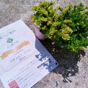ペチュニア「ライム」モニター 当選しました🙌 うれしいです☺️ とってもさわやかなライム色🍋🟩 鉢いっぱいにモリモリ咲かせたいです〜😆 豊明市場様、GreenSnap様、ありがとうございます😊 大切に育てます❣️