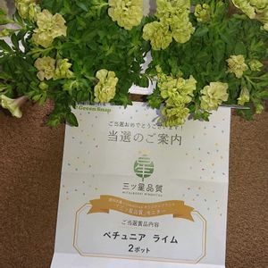 ペチュニアライム当選させていただきました。ありがとうございます。まだ、植え替えしてませんが、庭が明るくなります。ありがとうございました。大事に育てたいです。