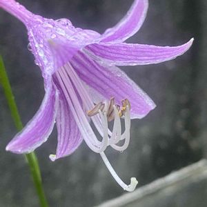 他の擬宝珠(ギボウシ)が終わった頃、この子だけぽつんと蕾が出てきました。 水をあげた後なので、滴がおまけで付いています。ちょっと作為的😅 スマホに百均のマクロレンズを付けて撮りました。