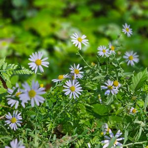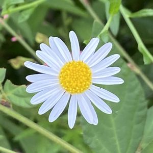 本日ラストは大好きな ユウガギク🌿💜🌿 漢字で柚香菊🌿💜🩵💜🌿 葉っぱを揉むと柚子の香りが するそうです🌿🍊🌿 🏷水曜日は水色 🏷水色の恋♡ 🏷素敵な水曜日 先日の自然教育園で🏞