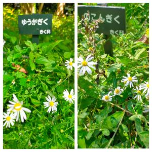 筑波実験植物園の水路横に、新しくユウガギクのコーナーが出来ていて、綺麗な花を咲かせていました。 この植物園では。筑波山で見られる植物のおよそ半数(約400種類)をみることができます。名札に筑波山のマークがつけてあり、筑波山歩きに役立つようになっています。このユウガギクにも、筑波山マークがついていました。