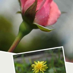 こんばんは❗ 今日の昼休みに 見上げる位置の薔薇と 足元のタンポポ 上下見ないとね❤️