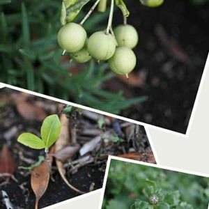 先日埋めたクルミに 緑色のものが見えてきた。 早く外に出てきなさい❗