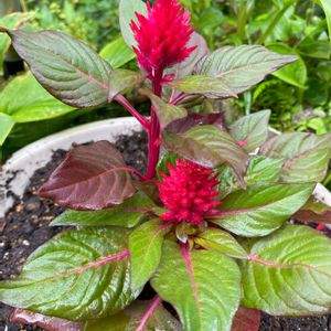 夏の盛りのケイトウと、一味ちがうと思います 葉も花もシックな色合いです ✩︎°。⋆︎⸜(ू。•ω•。)