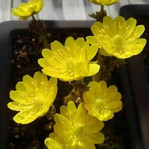 *福寿草* 元旦に咲くよう年末27日に2鉢、部屋に入れました。 外は朝方、ー22度🌬️室内26度🌡️で心配したけれど全部で21輪✨咲いてます!! 😆ヤッター!ヤッター❤️