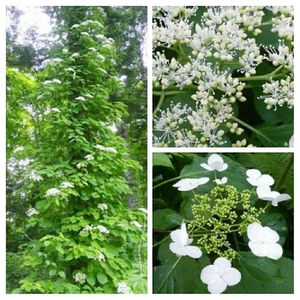 【ツルアジサイ】 唐松の木に巻き付きツルアジサイが咲いていましたよ♪ 右上↗️は、真ん中の小さな花です(^^)
