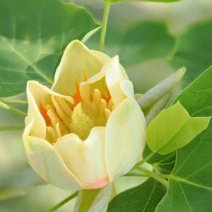 ユリノキの花🧡💚 いつも高いところに咲いていて、なかなかしっかりと見ることができないユリノキですが、こんなに中を覗き込める花がありました! 5月1日昭和記念公園にて📷 🏷日曜ビタミンカラー♪ 🏷目に青葉〜2025 ②ユリノキでお願いします
