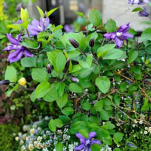お早うございます。 5月ですね〜☺️ 白内障の手術からほぼ1ヶ月 今一つの術後生活😅💦 庭仕事もままならず(禁止の為) それでも庭のお花は、 元気に咲き誇り 初夏へと季節がうつり お花とニャンコに癒されてます。 5月も ボケ防止の為 GS参加させて下さいね。😂🤣🤣、どうぞ宜しくお願いします…🙇♀ このクレマチス ネームプレートと 全く違うお花が咲いてビックリ そんな事も有るんですね… 花付きだと間違いなくて 良いですが。 お花は10㌢と大きめ 小花好きの私の選ばないタイプでしたが 咲いて見ると 中々見事👍😘 名前不詳ですが ❁💜クレマチス様です。🤭☺️✌️ 3年目です ユカリさんの、 🏷️目に青葉〜2025 に参加させて頂きます☺️🙏🙇♀ (1種目クレマチス)