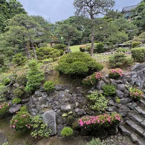 長崎散歩🚶♀️🎶 シリーズ 〜2 No.1.2.3 (花月) 江戸時代から多くの文人や武士が訪れ、芸術、学問などの最先端の文化や情報が集約された国際的文化交流の場としての一面も持っていたそうです。 昭和35年、長崎県指定文化財となりました。 皇族や各国の国賓が訪れる長崎の迎賓館として営業しています✨ 卓袱料理が有名✨ No.1 建物内からお庭を見てー 800坪の日本庭園は、元禄時代からの歴史があり、春の桜、初夏のツツジ🌺秋の紅葉🍁と四季の移ろいを教えてくれます✨ 岩崎弥太郎さんが、酔って池に落ちたという逸話も✨ No.2 床の間にはステキな生け込みが✨🌼🌿🌼 No.3. (花月)入り口の様子です No.4 、5 近くの公園で見つけた、仲良しのニャン(=^x^=) ニャンコの後ろはツボミがたくさんの紫陽花のお花達 坂本龍馬の銅像も普通の公園にさりげなく✨ 足元には猫ちゃんが🐱 🏷️ニャンニャン祭りに参加します🐱遅刻ですみません! 🏷️ 目に青葉〜2025 参加します✨ 🏷️目に青葉〜2025 に、 花月の庭園 景色で参加いたします✨3回目🌿🌲🌸 宜しくお願いいたします✨