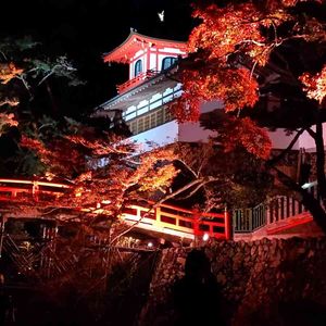 昨日の紅葉ライトアップ。 滝までの途中にある、瀧安寺。 赤い橋の橋脚が工事🚧中で、少し残念でしたが・・・。ライトに照らされて、 浮かび上がる鳳凰閣😍💕こちらのライトアップは23日までのようです。