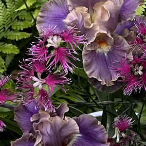 ❶ジャーマンアイリス ニッケルズワース✨✨花数増えてきました🙌🙌ダイアンサス レインボーラブリネス(種蒔き組)と共に💕❷ガーベラ✨✨少しずつ花数増えてきました🙌💓