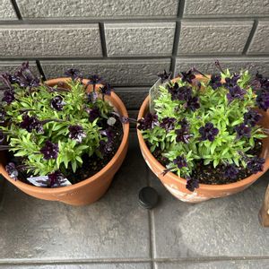 ペチュニアテヌートモニター報告🤗 連日の暑さの中、次々お花を咲かせています🖤⋆͛*͛ 今日は花がら切りと株元の葉をすっきりさせました✂️ ペチュニアなのでベタベタするから日々はノーメンテ😅 お手入れするときは一気にやるようにしています。 ちなみに④はお手入れ前🫣 ⑤2週間前に切り戻した寄せ植えの株。 お花をすべて切りましたが、もうここまで咲いてます👀✨️ 2週間でこんなに咲くなら、 おひとり様鉢も切り戻そうかな⁉️ 花がらをひとつひとつ切るより、切り戻す方がラクだもの😂