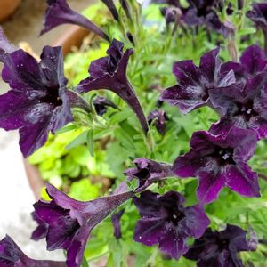 連投失礼します🙏💦 ペチュニアテヌート 経過報告です✎*。 昨日の大雨で軒下にも雨が吹き込んだようで、朝に見たらお花が濡れてましたがなんだかとっても綺麗ですෆ˚* だいぶ咲いてきましたが、梅雨前に1度切り戻すにはまだ小さいかなぁ…と思いつつ、切り戻しはしないといけないので様子を見て切り戻ししたいと思います✂️⸒⸒