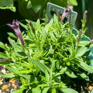 R7.5.18(日) 三ツ星品質モニター ペチュニア テヌート 経過報告...φ(⸝⸝.ˬ.ꕤ)̧̢メモメモ ペチュニアは夏の花壇の女王と呼ばれるほどに、ガーデニングを彩る花として人気の高い夏の花です。テヌートとは音楽のアーティキュレーション(音と音のつなぎ方や切り方でフレーズに表情を付けること)に関する音楽記号のひとつで、音符のような形と色から命名しました。と紹介されています𓂃𓂂ꕤ*.゚ 植え付けをして2週間が経ちました。ついてた蕾がほぼ開花したようです𓂃𓂂ꕤ*.゚来週は切り戻してみようかな( ´͈ ᵕ `͈ )