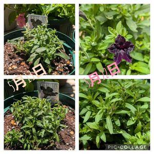 ペチュニアテヌート モニター記録です✎*。 バッサリ切り戻した一株に花芽が上がってきましたෆ˚* 咲くのももうすぐです•ᴗ•✿ もう1つの方はのんびりさんかな? よく見ると少しずつ大きくなってきているようです✧︎*。 花芽がついている方が葉が大きく、そのあたりも成長の差があるのかな?