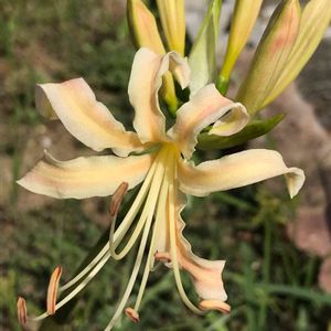 今日のお花🌼 クリーム色のヒガンバナ ヒガンバナといえば赤❤️しか知らなかった! 今日撮れたて❣️ 会社🅿️の花壇 社長『クリーム色も咲いてますよ♪』 『知ってるわ!俺が植えたんだだから』 と言われそう😆