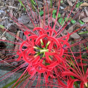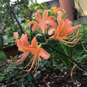 鹿児島に引っ越ししました。 こちらの彼岸花はオレンジ色もあって 驚きです。この彼岸花少し元気が無く 害虫にやられた後が茎に見えました。 ここ鹿児島は害虫多いです。 本州の害虫より強そうです。まだその姿は未確認ですが