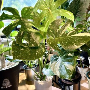 後ろ姿も美人です😊モンステラタイコンストレーション🇹🇭斑入りは勇気が要りましたが、お迎えしてよかったです😊 3月4日にお迎えして以来、葉っぱが4枚出て切り目も8つになりました。成長が早い😊