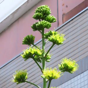 駅前にすごいお花が咲いていると知人から。早速出かけて パチリ Googleレンズで調べたところ「アオノリュウゼツラン(青龍舌蘭)」 のようです。 数十年に一度だけ開花するお花とのことで、出会えてラッキー🤗