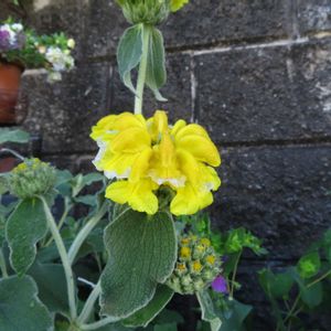 見覚えのあるお花だけど? パチリ Googleレンズで調べたところ「フロミス・フルティコーサ(エルサレムセージ)」でした。